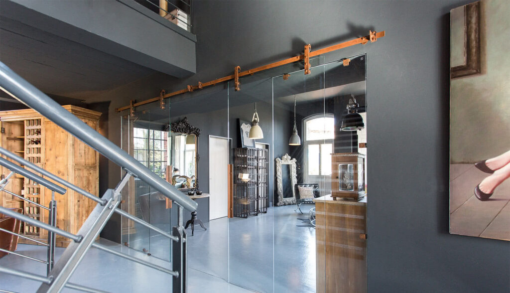 - Rail is solid stainless steel 1 9/16″ x 3/8″, pre-drilled for wall mount positions. [Screws are visible to provide an industrial style]