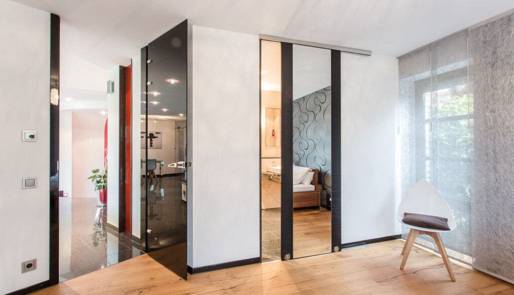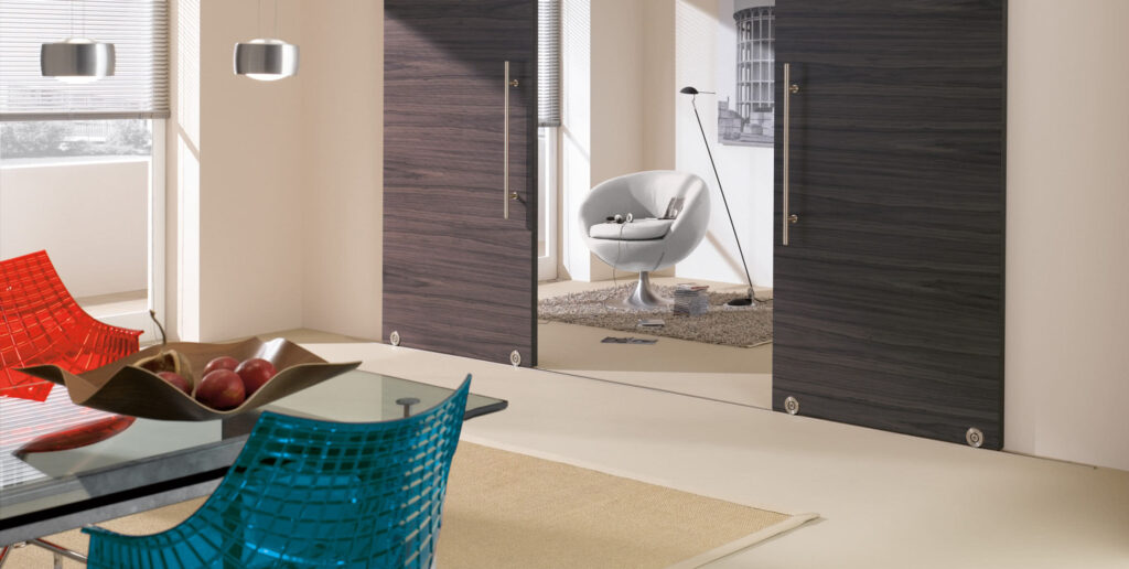 This Terra model is designed solely for wood doors. The wheel is tucked within a cavity, leaving the wheel visible and top and bottom tracks to align, making this an ideal candidate for pocket door solutions or bi-passing multi-door configurations.
